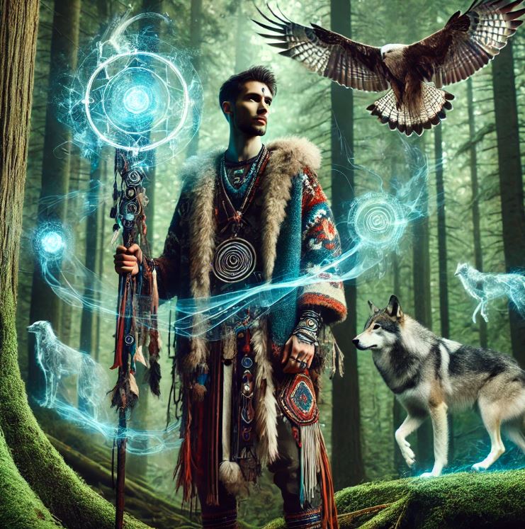 Een sjamaan is iemand die in staat is om via trance of spirituele reizen contact te maken met de geestenwereld. Dit gebeurt vaak door middel van rituelen, drummen, zang of het gebruik van hallucinogene planten. De sjamaan werkt als een bemiddelaar tussen de fysieke en spirituele werelden en helpt mensen bij genezing, inzicht en spirituele begeleiding. De term sjamaan vindt zijn oorsprong in Siberië, maar sjamanistische praktijken komen wereldwijd voor.
